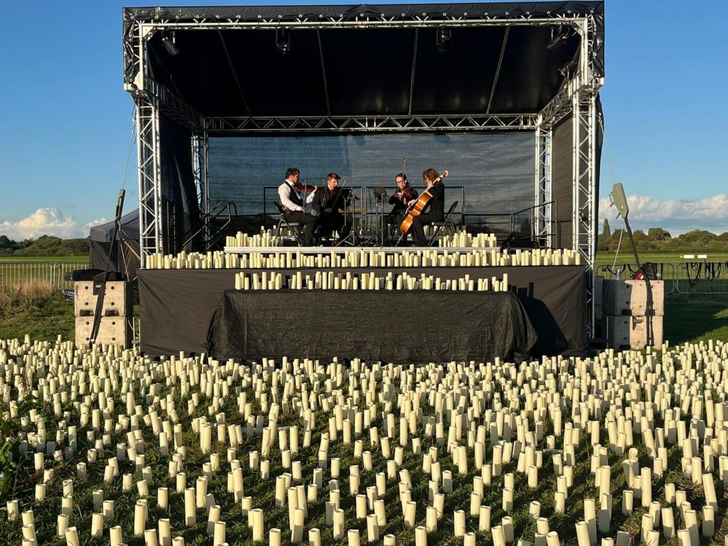 We played an evening outdoor candlelight in Manchester to a click track, timed to work with a drone show. I have never done anything like this before. It was an amazing experience, though not without teething problems. It was very cold for us as musicians and we’ve been promised if there is a next time there will be more shelter for us and our instruments, and heaters…hooray!